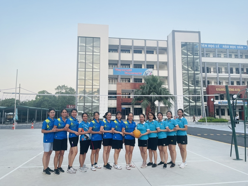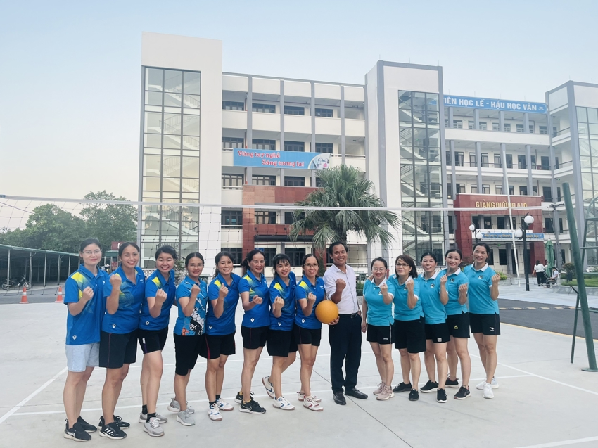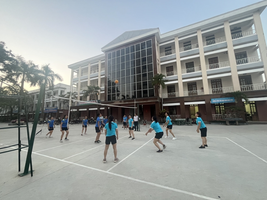 Ngay sau phần gặp mặt và trao quà, Công đoàn Trường đã tổ chức trận giao hữu bóng chuyền hơi nữ giữa hai đội:
